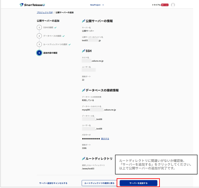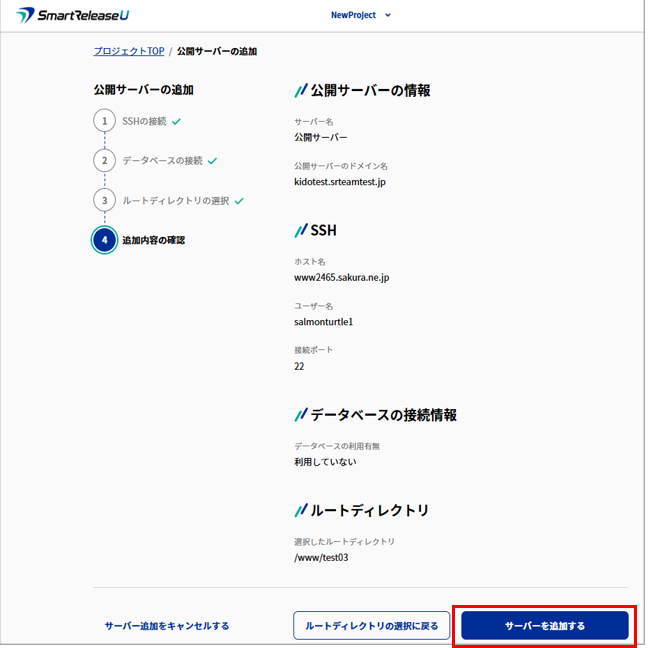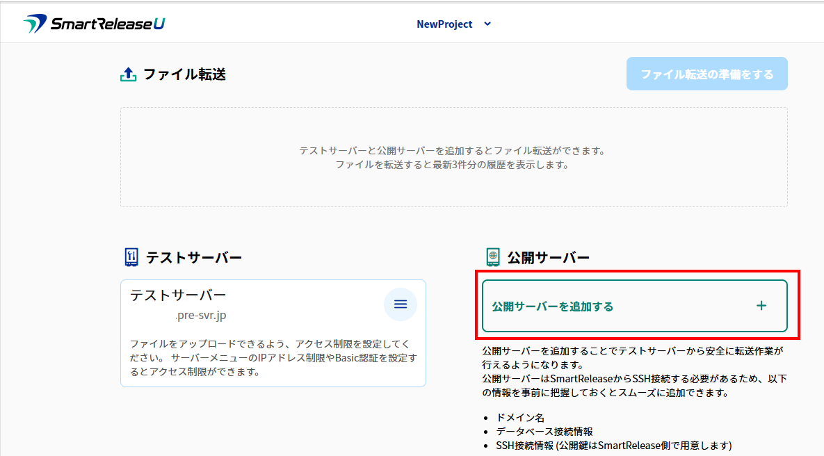 公開サーバーを追加するには、先に「テストサーバー」の追加が必須です。