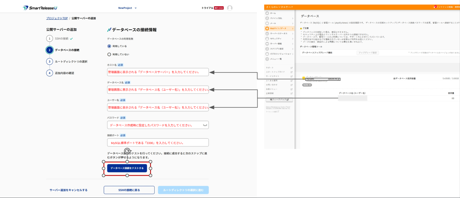 ・公開サーバーのドメイン名:接続先のWebサイトのURL