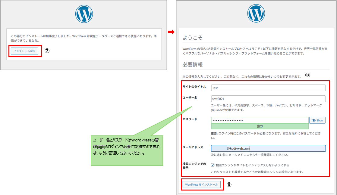 「www」直下に直接ファイルを置くとインストールできないため、FTPソフトで「test〜」などのフォルダを作成し、その中にファイルを配置してください。