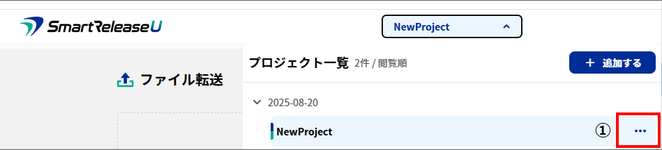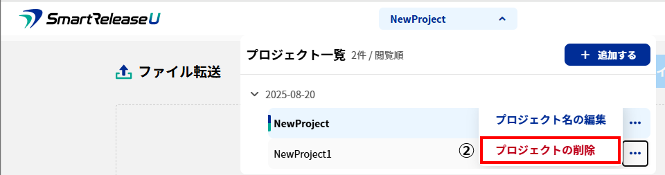 - プロジェクト一覧で、削除したいプロジェクトの①「…(三点リーダー)」をクリック。