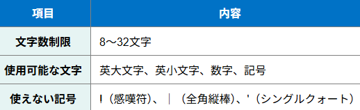 文字数や使える記号が異なるため、確認しておくことで設定ミスや接続エラーを防げます。