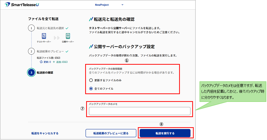 3.以降は「ファイルを全て転送」と同じ流れになります。