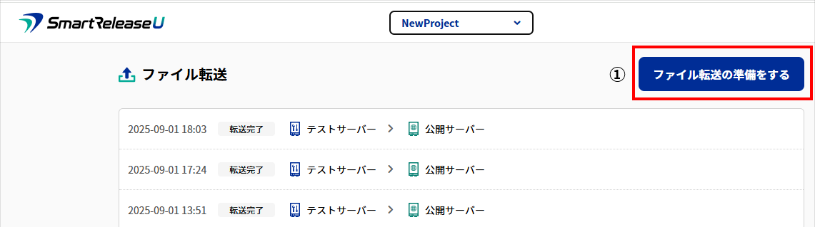 1.プロジェクトTOP画面で「ファイル転送の準備をする」をクリック。