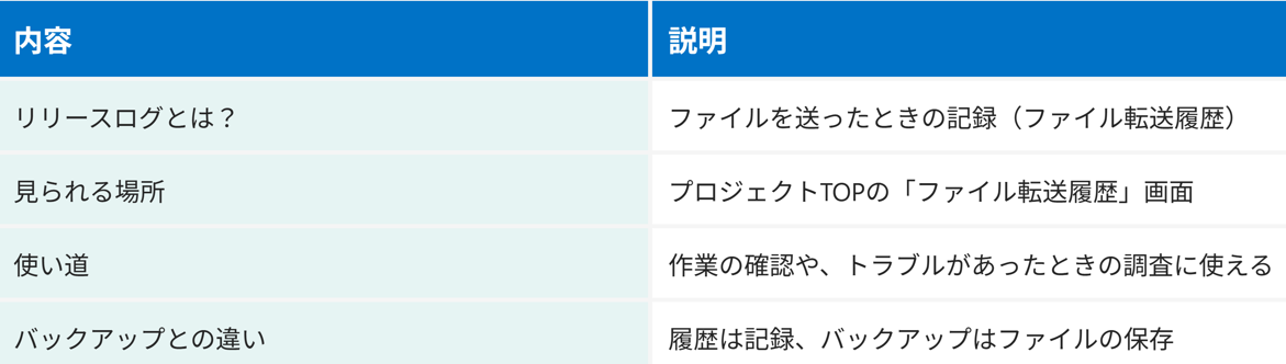 • ファイル転送履歴・リリースログは、作業の記録です。
