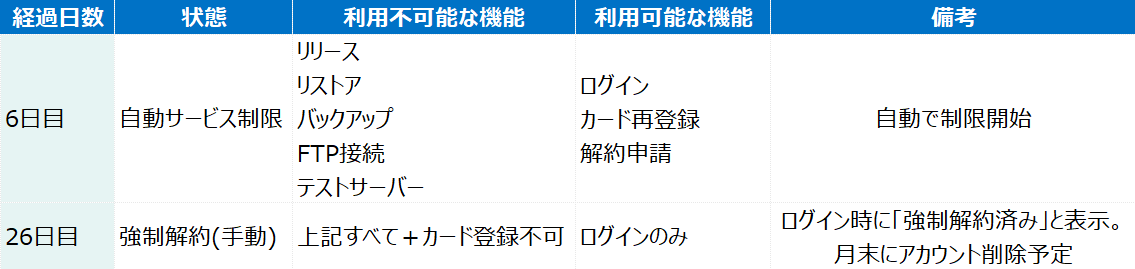 決済が未完了の状態が続いた場合、サービスやアカウントにどのような影響がありますか?